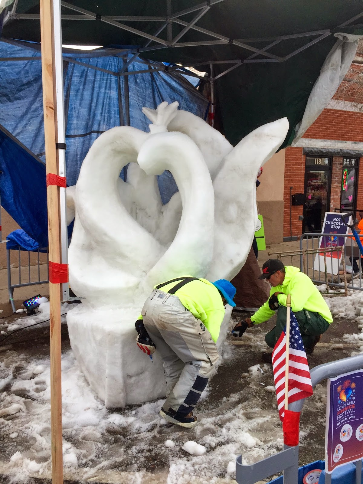 Mark has been under the weather with a sinus infection these past few weeks so some of the plans that we had made to go sight-seeing were put on hold. One of the things we had planned on doing was going to the International Ice Sculpting contest in Breckenridge, CO. Unfortunately, the weekends that were open to the public were the two weekends that Mark felt the worst so we didn't make it this year. But I happened to find out that Loveland, Co was having their annual ice sculpting contest on Saturday so we all made the hour trip North to see what it was all about.